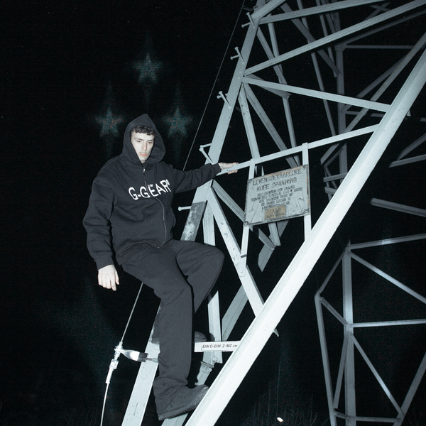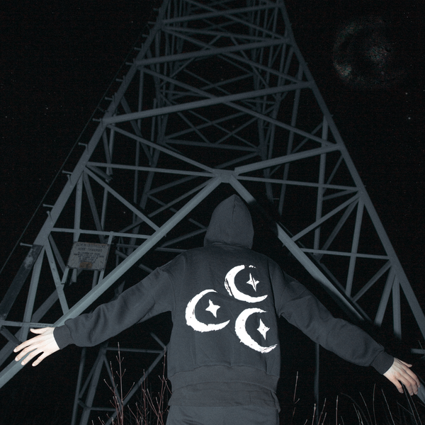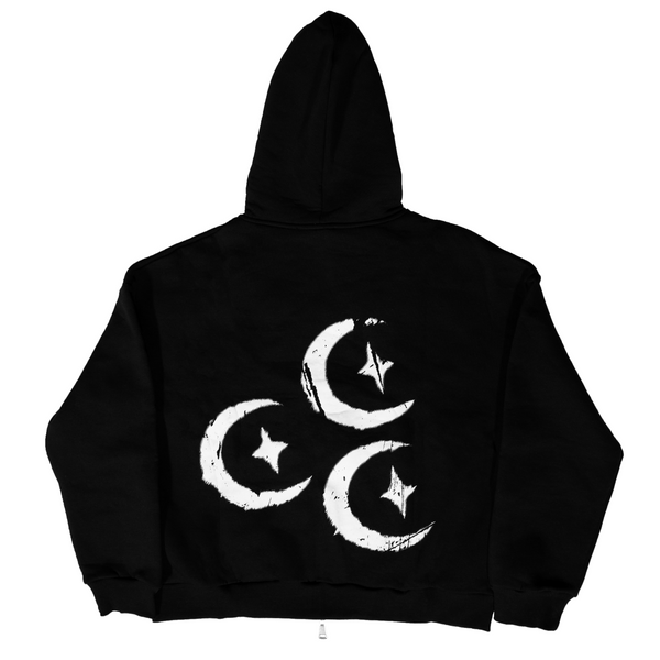 Black double zipped-hoodie made of 350gsm heavy cotton. With a front and back print.