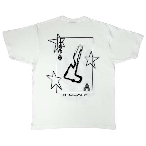 White oversized t-shirt made of 265 g/sm cotton. With a print on the front and back side.
